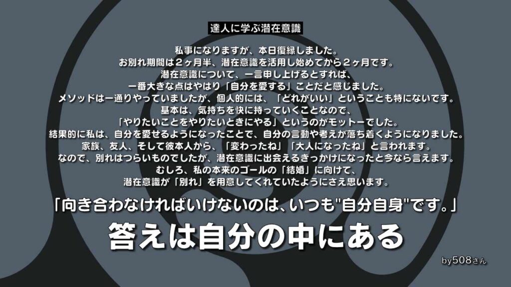なので、別れはつらいものでしたが、潜在意識に出会えるきっかけになったと今なら言えます。