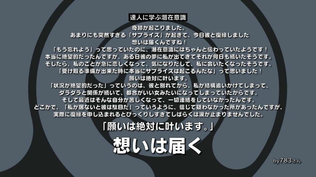 「もう忘れよう」って思っていたのに、潜在意識にはちゃんと伝わっていたようです!