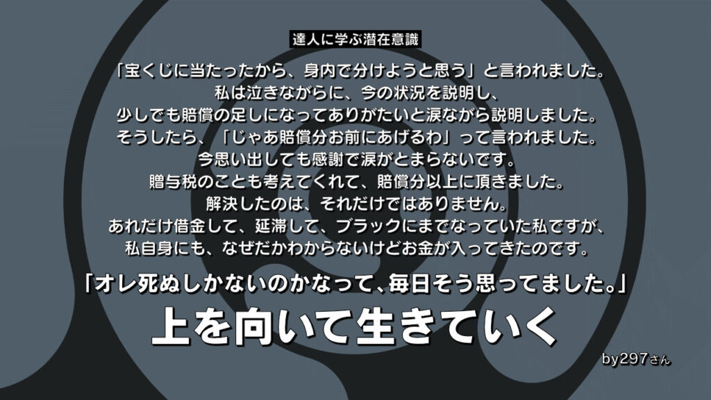 寝ている間も、私の声で「私は運がいい」とか、耳から聞こえていたんだと思います。