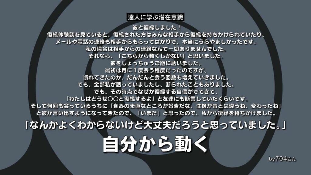 ここ一ヶ月、なぜか不安が一切無くて、「絶対に復縁する、もう時間の問題だ」と確信していました。