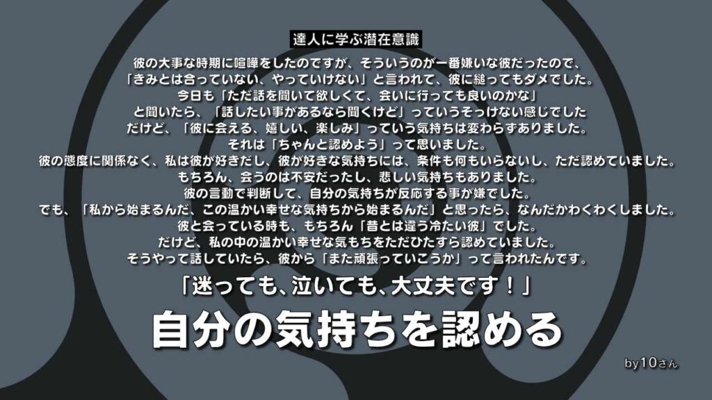 自分の中にある、幸せな気持ちも、不安な気持ちも、ただ認めてあげてくださいね。