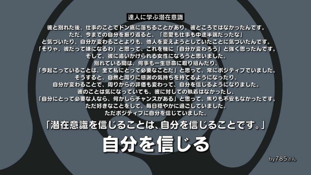 前までは、「潜在意識」っていうものを何か特別なものだと思っていましたが、「潜在意識って自分自身なんだな」っていうことを実感しました。