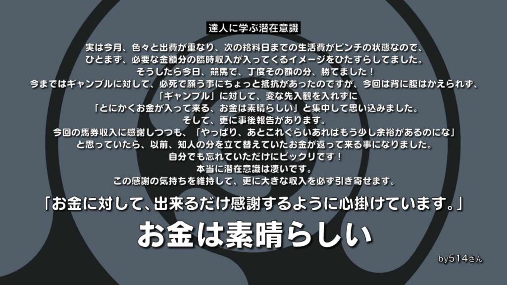 この感謝の気持ちを維持して、更に大きな収入を」必ず引き寄せます。