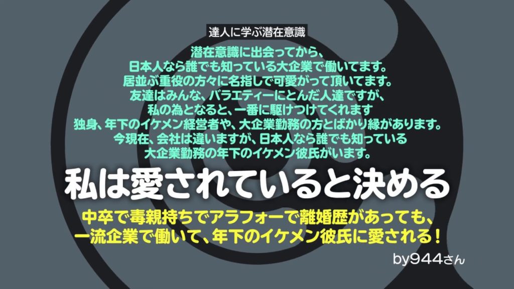 潜在意識に出会ってから、日本人なら誰でも知っている大企業で働いてます。