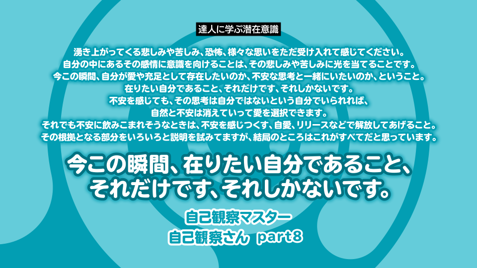 【方法論】【自己観察さんpart8】「今この瞬間、在りたい自分であること、それだけです。」不安を感じても、その思考は自分ではないという自分でいられれば、自然と不安は消えていって、愛を選択できます。