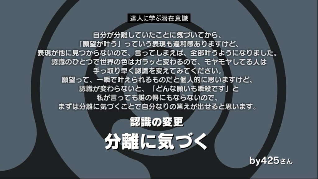 願望って、一瞬で叶えられるものだと個人的に思いますけど、認識が変わらないと、「どんな願いも瞬殺です」と私が言っても誰の得にもならないので、まずは分離に気づくことで自分なりの答えが出せると思います。