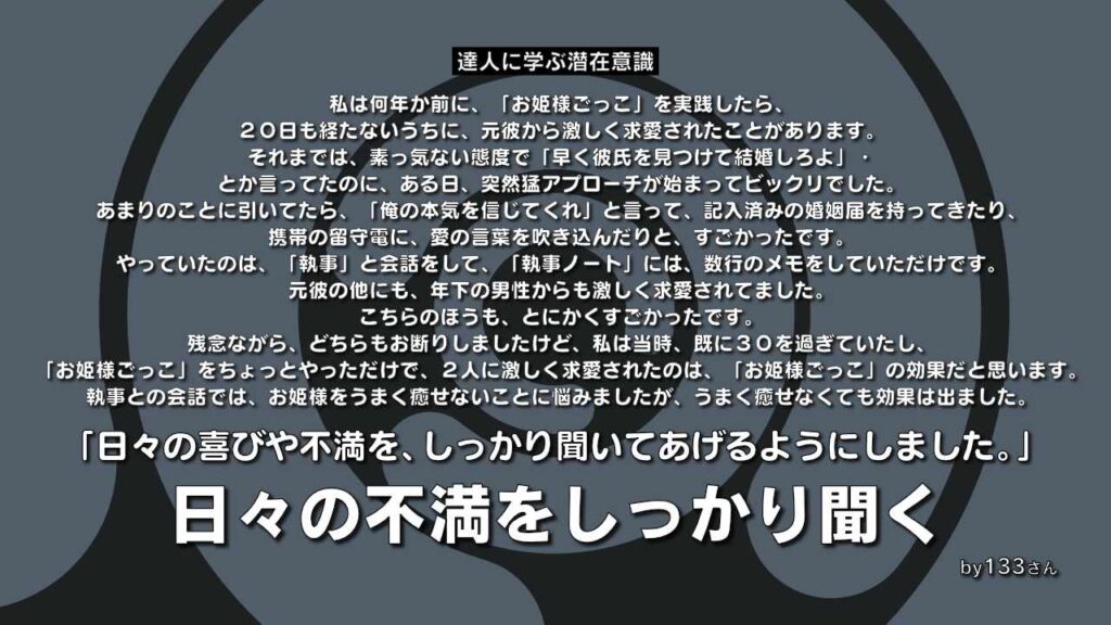 私は、お姫様の日々の喜びや、不満を、しっかり聞いてあげるようにしました。