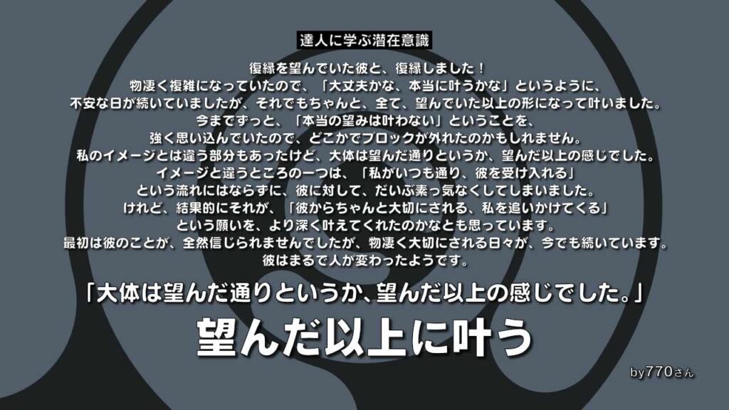 けれど、結果的にそれが、「彼からちゃんと大切にされる、私を追いかけてくる」という願いを、より深く叶えてくれたのかなとも思っています。