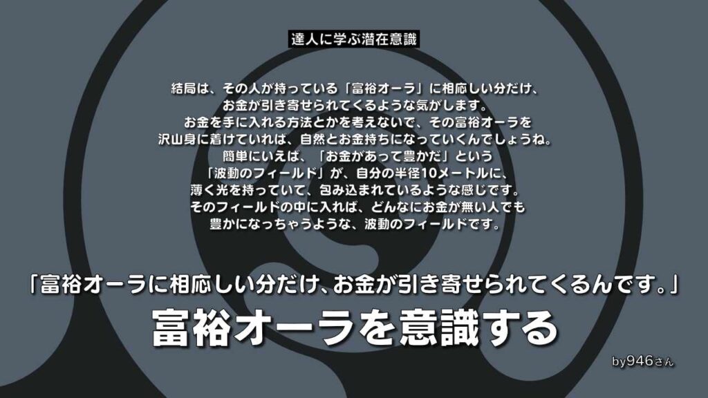 「富裕オーラ」の説明は難しいですが、なんとなくイメージで、自分にオーラがあるようなイメージです。